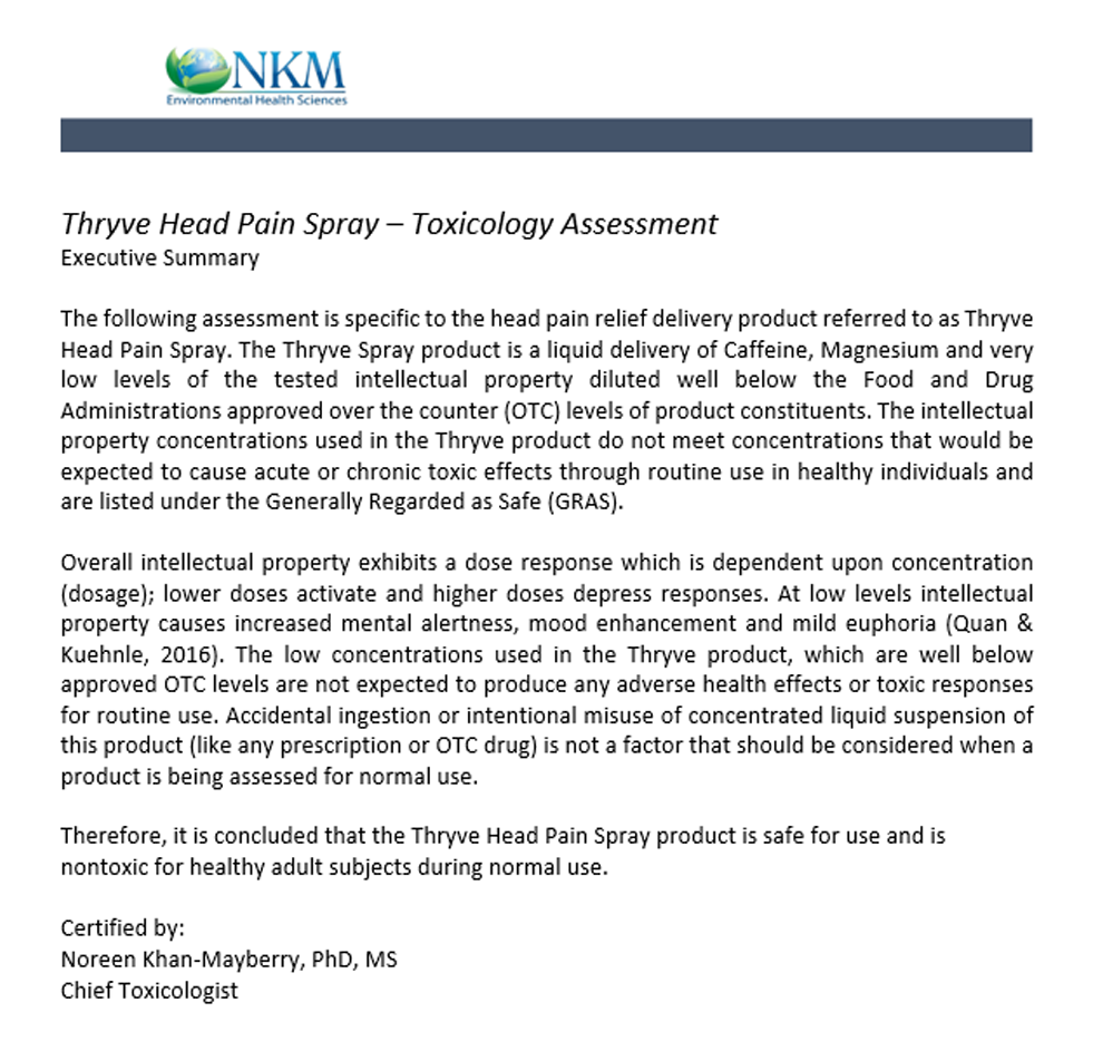After 5 years of development and in-market testing, Thryve clients are providing to us their experiences with this breakthrough product for expedient head pain relief.